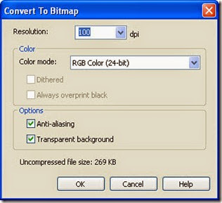 Buat kotak dengan Rectangle tool di Toolbox beri warna putih, kemudian pada Menu Bar --> Bitmaps --> klik Conver to bitmap...